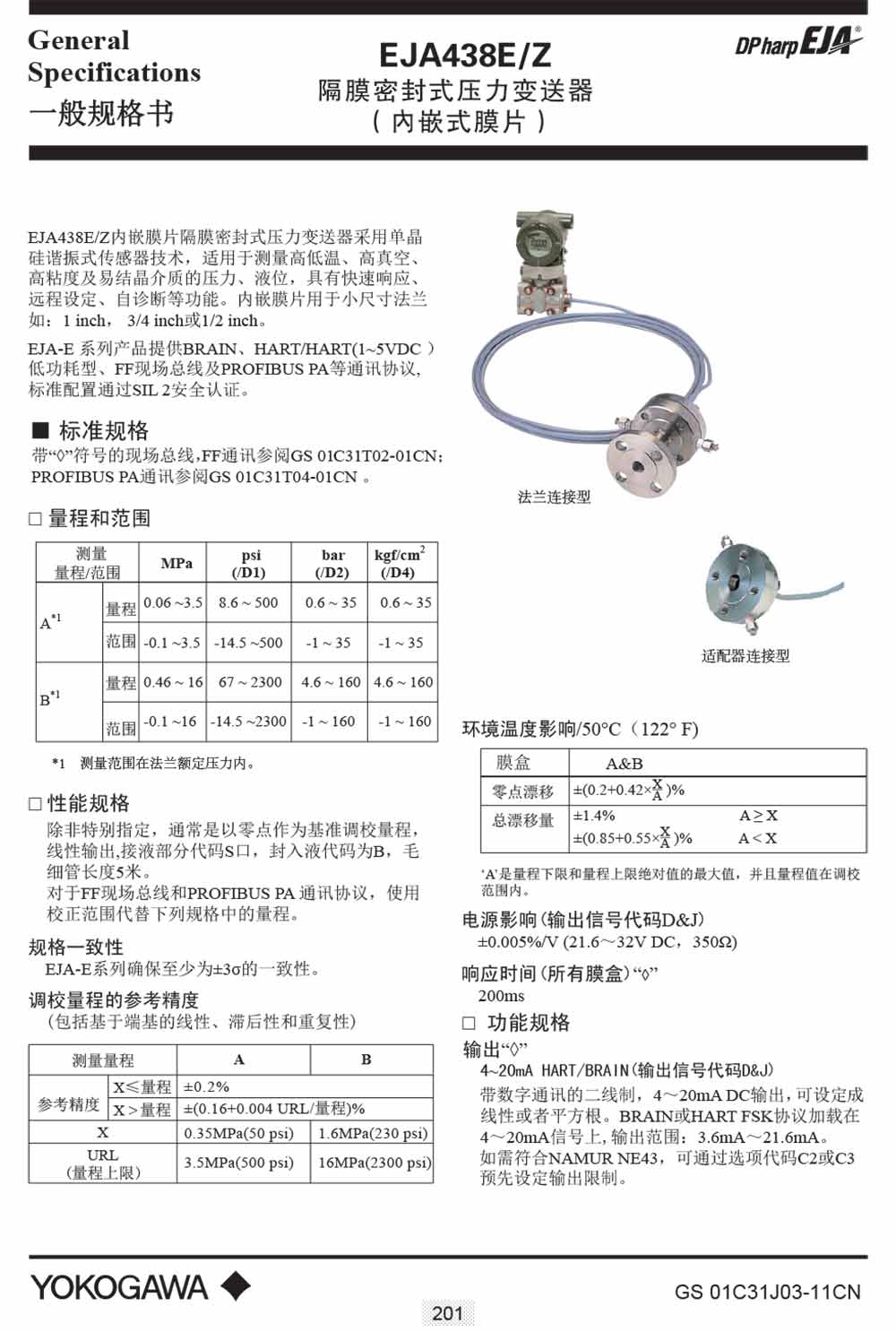名稱:EJA438E/Z隔膜密封式壓力變送(內(nèi)嵌式膜片)